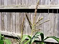 El despanojado de maíz es un procedimiento agrícola que consiste en la eliminación de las flores que producen polen, panoja, en lo alto de las plantas de maíz y arrojarlas al suelo. Es una forma de control de polinización, [1] se emplea para hibridar o cruzar dos variedades de maíz. La hibridación del maíz está ampliamente difundida debido al fenómeno de Heterosis o vigor híbrido. Los lotes de maíz que van a ser despanojados se siembran con dos variedades de maíz, uno que cumple la función de macho y la otra variedad cumple la función de hembra, normalmente en surcos diferentes. La extracción de la panoja de todas las plantas de la variedad hembra deja sus barbas inferiores para ser fecundadas por la panoja de la variedad macho de surcos adyacentes que no son despanojados. Los surcos con machos son eliminados después que estos terminaron de realizar la polinización. Los granos que crecen en los surcos hembras resultan en un híbrido o una cruza específica. Las semillas de maíz híbrido así producido tendrán luego rendimientos mucho más altos y serán más uniformes que las semillas de maíz producidas mediante polinización abierta. Para la producción de semillas en forma moderna las variedades a hibridar son cuidadosamente seleccionadas para que la semilla producida presente los rasgos específicos deseados. El proceso de despanojado generalmente implica el uso combinado de máquinas especializadas y mano de obra humana.