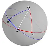 En tres dimensiones, el desplazamiento angular es una entidad con una dirección y una magnitud. La dirección especifica el eje de rotación, que siempre existe en virtud del teorema de rotación de Euler; y la magnitud indica el valor de la rotación expresada en radianes alrededor de ese eje (usando la regla de la mano derecha para determinar su sentido). Esta expresión se denomina notación axial-angular del ángulo girado.