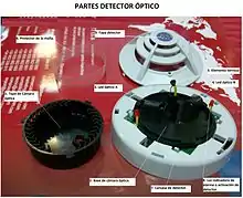 Un detector de humo es una alarma que detecta la presencia de humo en el aire y emite una señal acústica avisando del peligro de incendio. Atendiendo al método de detección que usan pueden ser de varios tipos: