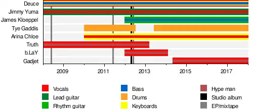 | Géneros | Hip hop, rap rock, rap metal, nu metal, crunkcore | |