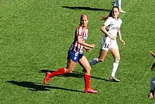 La temporada 2021-22 también la comenzó con un buen estado de forma, marcando cinco goles en las cinco primeras jornadas de liga, incluyendo el derbi contra el Real Madrid y un doblete ante el Alavés. Fue elegida mejor jugadora de los meses de septiembre, octubre y enero.[60][61][62] En diciembre bajó su rendimiento y fue expulsada tras ejecutar un penalti de manera antirreglamentaria y por protestar.[63] En enero volvió a reencontrarse con el gol,[64] pero en febrero pasó a ser suplente y dispuso de menos minutos. En marzo volvió a ser expulsada por doble amonestación en un partido ante el Granadilla en el que fue suplente y el resultado estaba decidido, lo que le llevó a no poder jugar el partido decisivo ante el Real Madrid, en el que perdieron.[65] Siguió alternando titularidad con otras delanteras hasta el final de la temporada. Con todo fue la delantera que jugó más minutos y la máxima goleadora del equipo con 10 goles en liga, en la que acabaron en cuarta posición a un punto de la tercera plaza que daba el último cupo para disputar la Liga de Campeones, y uno en las semifinales de la Supercopa, en la que perdieron la final ante el F. C. Barcelona. En la Copa de la Reina el equipo cayó en octavos de final ante el Sporting de Huelva.