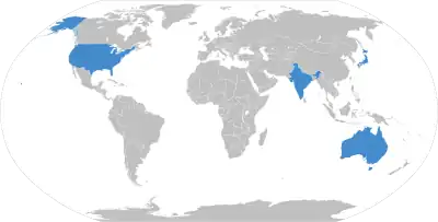 La primera versión del Quad dejó de existir luego de la retirada de Australia en febrero de 2008, poco después de que el primer ministro australiano Kevin Rudd asumiera el cargo, luego de que un ejercicio naval conjunto entre el Quad y Singapur provocó protestas diplomáticas de China.[2] Otras razones para la interrupción del Quad fueron que a fines de 2007, Yasuo Fukuda (con una actitud más amigable con Beijing) reemplazó a Abe como primer ministro de Japón y la visita de estado del primer ministro indio Manmohan Singh a China en enero de 2008, durante el cual declaró que La relación India-China era una prioridad.[3] Bajo Rudd y su sucesora Julia Gillard, se mejoró la cooperación militar entre los Estados Unidos y Australia, lo que condujo al despliegue de marines estadounidenses cerca de Darwin, Australia.[4][5] India, Japón y Estados Unidos continúan realizando ejercicios navales conjuntos a través de Malabar.