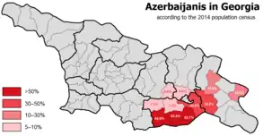 Los azerbaiyanos georgianos son la población azerbaiyana, que vive en Georgia. Según los datos del censo de 2002, en Georgia viven 284.761 habitantes de étnico azerbaiyano.[5] Los azerbaiyanos constituyen el 6.5% de la población de Georgia y son la minoría étnica más grande del país. Aquí, azerbaiyanos habitan, principalmente, en áreas rurales como Kvemo Kartli, Kajetia, Shida Kartli, Mtsjeta-Mtianeti u otros. La región más amplia de residencia de los azerbaiyanos es Borchali. También hay una comunidad histórica azerbaiyana en la ciudad capital de Georgía, Tbilisi (Tiflis) y comunidades más pequeñas en otras regiones del país.