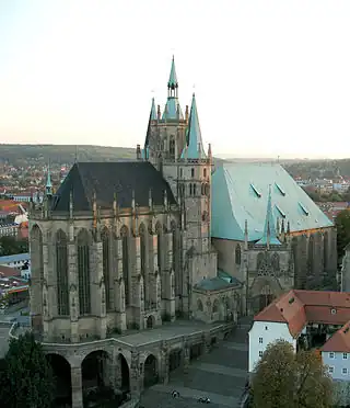 Con la caída del Muro de Berlín y la Reunificación de Alemania, la Santa Sede reorganizó los territorios diocesanos alemanes. Tras el acuerdo diplomático con Turingia del 14 de junio de 1994,[7] se erigió la diócesis de Érfurt, establecida canónicamente con la bula Quo aptius del papa Juan Pablo II del 27 de junio siguiente; la nueva diócesis pasó a formar parte de la provincia eclesiástica de la arquidiócesis de Paderborn.[8]
