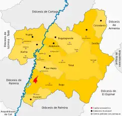 ![]() Mapa de la jurisdicción de la diócesis de Buga. | ||
