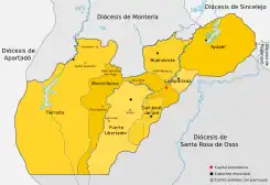 ![]() Mapa de la jurisdicción de la diócesis de Montelíbano. | ||