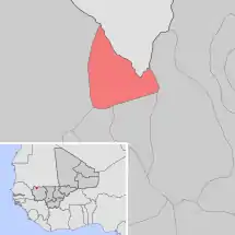 Se encuentra ubicada al oeste del país y al norte de la región de Kayes, en la zona climática del Sahel, cerca de la frontera con Mauritania y la región de Kulikoró.