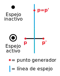 El diagrama de Coxeter-Dynkin puede verse como una descripción gráfica del dominio fundamental de los espejos. Un espejo representa un hiperplano dentro de un espacio euclídeo, esférico o hiperbólico de una dimensión dada. En espacios 2D, un espejo es una recta, y en 3D un espejo es un plano.