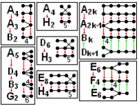 Cada diagrama representa un grupo de Coxeter, que se clasifican por sus diagramas asociados.