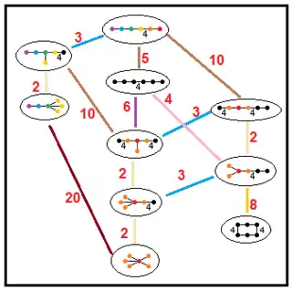 - Los grupos bifurcados Dn y En también están etiquetados con un superíndice [3a,b,c] donde a, b, y c son los números de segmentos en cada una de las tres ramas.