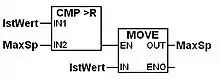 Las entradas y salidas de los bloques están conectadas mediante enlaces, los cuales pueden usarse para conectar dos puntos lógicos del diagrama, ya sea una variable de entrada con una entrada del bloque, una salida de un bloque con una entrada de otro bloque, o una salida de un bloque con una variable de salida.