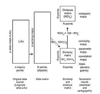La dialectometría utiliza varios procedimientos habituales en el ámbito de la clasificación numérica, para lograr abstraer de los datos que contienen los atlas lingüísticos las estructuras y modelos internos y básicos de las que son reflejo y expresión, y poder finalmente visualizarlos.