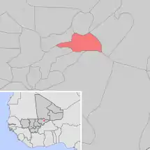 Se encuentra ubicada en el centro-este del país, cerca de la frontera con Burkina Faso y con la región de Tombuctú.