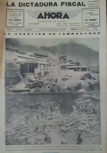Suiberto Torres Tamayo,[3] Jefe de Redacción de "Ahora", periodista nacido en Caraz (Ancash), fue uno de los fundadores de la Asociación Nacional de Periodistas del Perú (ANP)[4] en 1928. El 28 de junio de 1934 en "Ahora" aparece la siguiente Nota Editorial:
