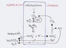 Los inhibidores de la anhidrasa carbónica ( IAC ) se utilizan por su efecto sobre la producción de humor acuoso. La AC una enzima muy importante ya que regula y mantiene el pH regulando la reacción :