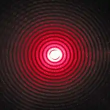 - J1 es la Función de Bessel. Cuanto menor sea la apertura, mayor será el tamaño del punto a una distancia determinada y mayor la divergencia de los rayos difractados.