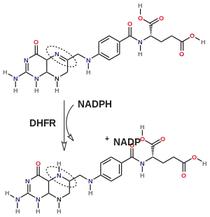 La dihidrofolato reductasa o DHFR es una enzima que reduce el ácido dihidrofólico a ácido tetrahidrofólico, utilizando NADPH como donador de electrones, que puede ser convertido a los diversos cofactores tipo tetrahidrofolato usados en química de transferencia de 1 carbono. En humanos, la enzima DHFR está codificada por el gen dhfr.[1][2][3]