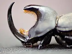 La especie presenta dimorfismo sexual. Los machos tienen un tono negro mezclado con gris oscuro y poseen un cuerno cefálico, grueso en su base que se va afinando hacia el extremo; las hembras, de color más negro y liso, no tienen cuerno y poseen la habilidad de volar. En estado larvario, se lo conoce como gusano blanco o isoca, y se alimenta principalmente de raíces y residuos orgánicos.