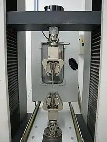 Algunas máquinas de ensayo de materiales someten las probetas a esfuerzos que pueden ser medidos con dinamómetros u otros instrumentos de medición de fuerzas, como una celda de carga. Además miden otras magnitudes como la deformación de la probeta en un ensayo de tracción, la penetración en un ensayo de dureza o el número de ciclos en un ensayo de fatiga.