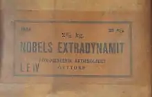Nobel vendía originalmente la dinamita como "Pólvora explosiva de Nobel", pero decidió cambiarle el nombre a dinamita, de la palabra griego antiguo dýnamis (δύναμις), que significa "poder".[5]