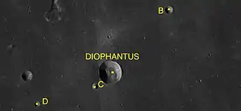 Por convención estos elementos son identificados en los mapas lunares poniendo la letra en el lado del punto medio del cráter que está más cerca de Diophantus.