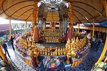 - Yanwang (閻王, "Rey del Purgatorio"),[nota 5] el soberano del inframundo, asistido por el Heibai Wuchang (黑白無常, "Impermanencia blanca y negra"), que representa la alternancia de los principios yin y yang, junto a Cabeza de Buey y Cara de Caballo, que escoltan a los espíritus hasta su reino.