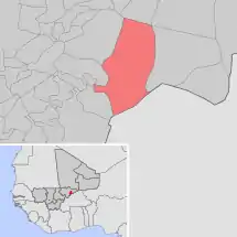 Se encuentra ubicada en el centro del país, junto a la frontera con Burkina Faso y a poca distancia al sur del río Níger.