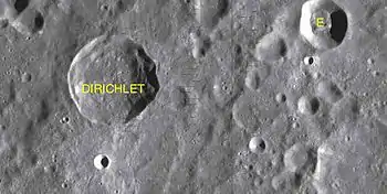 Dirichlet es un cráter de impacto que se encuentra en la cara oculta de la Luna. Se inserta en el borde exterior sur del cráter Henyey. Al sur-sureste aparece el cráter de mucho mayor tamaño Tsander.