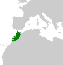 Está presente en gran parte de la zona mediterránea de Marruecos. En España está presente en las ciudades de Ceuta y Melilla. La especie alcanza altitudes de 2.600 m en las montañas del Alto Atlas.