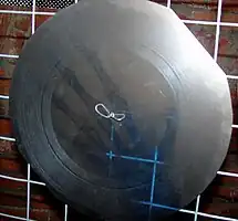 - En un principio, algunos discos de 78 RPM tenían agujeros más grandes, para que el usuario tuviera que comprar tocadiscos con las medidas correspondientes. Standard Records usaba un agujero de media pulgada,[13] Harmony Disc Records usaba un agujero central de 3/4",[14] United Records usaba un agujero de 1,5 pulgadas[15] y el más grande, Aretino, usaba un agujero de tres pulgadas.[16]