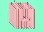Plano de deslizamiento: plano definido por la línea de dislocación y el vector de deslizamiento. Si la dislocación se mueve en la dirección del vector de deslizamiento, se dice que se mueve propiamente por deslizamiento y la línea de dislocación se mueve a lo largo del plano de deslizamiento.