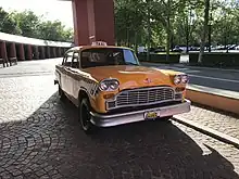 Entrada al Disney's Hotel New York, protagonizada por un taxi clásico.