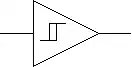 Para indicar que una puerta lógica es del tipo schmitt trigger se pone en el interior de la misma el símbolo de la histéresis: