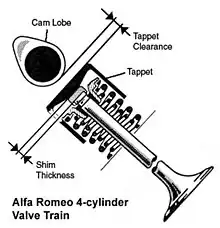 - Taqué o botador: Es un empujador que, movido por el árbol de levas, empuja la válvula. Pueden ser mecánicos, comunes o con un regulador de la luz de válvula o hidráulicos, que regulan la luz de válvula automáticamente.