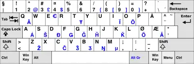 Teclado QWERTZ Bosnio, Croata, Serbio (latino) y Esloveno