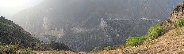 La capital se encuentra a 193 kilómetros de Arequipa, cuatro horas de viaje en bus, en la margen derecha del río Colca a 3 262 m s. n. m. Rodeado de grandes nevados como Sabancaya, Ampato y Chotoney.