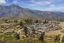Interpretase también, conforme muchos lo creen como pueblo silencioso por estar aislado y distante de los pueblos vecinos.Su ubicación e priviliegiada está en un patillo alto, del río Huanca Huanca que pasa por la profundidad a corta distancia. El antiguo camino inca Atun Ñan, cruza por el mismo pueblo hasta 1980, eran de tránsito de acémilas de sur a norte y viceversa. Aquí es normal el paso, mulas, caballos, burros con carga y otros montados y llamas lleno de esquelas cargando víveres y recogen sal desde la mina de Huarhua Arequipa. Las fiestas patronales es de mucha concurrencia donde suenan bombos, platillos y cornetillas en la casa del capitán o mayordomo.Increíble el eco de los cerros, se escucha a grandes distancias y llama la atención a los vecinos de los demás anexos y otros distritos cercanos, como Pacapauza, Rivacaico y anexo de Ampi.