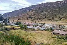 El pueblo primitivo estaba situado en una colina llamada Sallalli, con el nombre de San Roque; que este pueblo, por haber sido incendiado por las tropas diseminadas de Carratala (Pucatoro); los habitantes se habían trasladado al llano que actualmente se conoce con el nombre de Upahuacho.