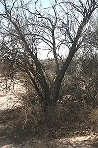 Los especies arbóreas del género Prosopis son los componentes más importantes de este sistema boscoso, junto con otras especies de raigambre chaqueña. Los árboles son de porte más bajo y distribución más esparcida que en el Chaco árido, teniendo a su vez sus bosques una menor diversidad específica por lo que a este distrito se lo suele comparar con un «Chaco árido empobrecido» aunque con algunos elementos endémicos e importantes aportes de la provincia fitogeográfica del Monte.