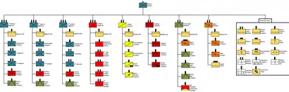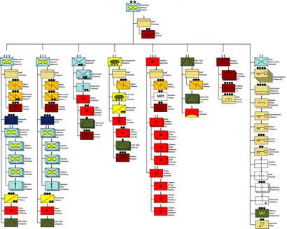 - Tres regimientos de infantería con personal y unidades de comunicaciones.