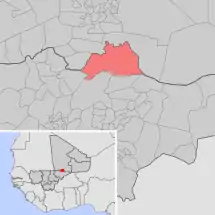 Se encuentra ubicada en el centro-este del país, cerca de la frontera con Burkina Faso y con la región de Tombuctú.