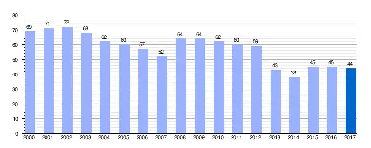 | Gráfica de evolución demográfica de Dobro entre 2000 y 2017 |