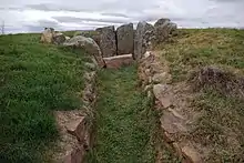 En el interior se encontró un ajuar compuesto por una cuenta verde de collar de variscita, varias cuentas de pizarra en forma de disco, una punta de flecha, un importante conjunto de microlitos geométricos, un prisma de cuarzo y varios fragmentos de cerámica de la Edad de Bronce.[1]