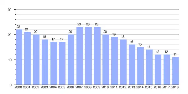 | Gráfica de evolución demográfica de Donas entre 2000 y 2018 |