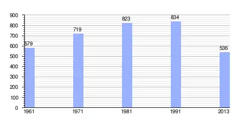 | Gráfica de evolución demográfica de Donji Bešpelj entre 1961 y 2013 |