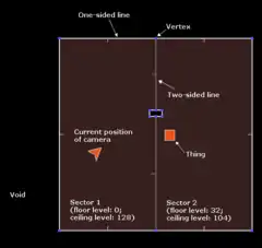 La unidad básica es el Vertex, el cual representa un punto en 2D. Los vértices (o "vertex" como son referidos internamente en el motor) son unidos para formar líneas, conocidas como "linedefs". Cada linedefs puede tener uno u dos lados, los cuales son conocidos como "sidedefs". Los sidedefs son agrupados para formar polígonos; estos son llamados "sectors". Los sectors representan áreas particulares del nivel.