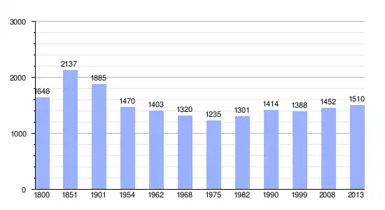 | Gráfica de evolución demográfica de Douchy-Montcorbon entre 1800 y 2013 |