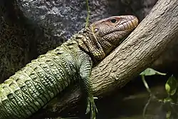 El lagarto caimán o iguana cabeza roja[1] (Dracaena guianensis) es una especie de reptil escamoso de la familia Teiidae que habita zonas pantanosas del norte de América del Sur. Tiene una cola larga, similar a la de los caimanes. Esta cola es útil para nadar y bucear. Se alimenta principalmente de caracoles.