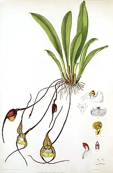 Dracula: nombre genérico que deriva del latín y significa: "pequeño dragón", haciendo referencia al extraño aspecto que presenta con dos largas espuelas que salen de los sépalos.