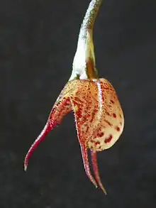 Dracula: nombre genérico que deriva del latín y significa: "pequeño dragón", haciendo referencia al extraño aspecto que presenta con dos largas espuelas que salen de los sépalos.